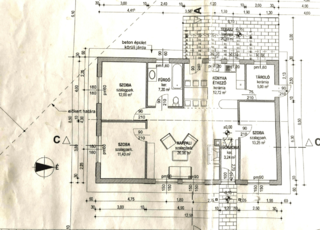 Das Haus verfügt über 3 Zimmer mit 13 m², 12 m² und 11 m², ein Wohnzimmer mit Küche und Essbereich mit 39 m²,