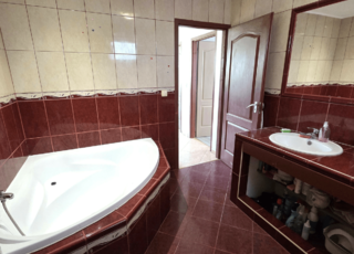 ein Badezimmer mit 7 m² und ein 3 m² großer Vorraum und eine 5 m² große Speisekammer.