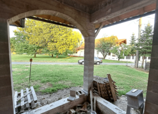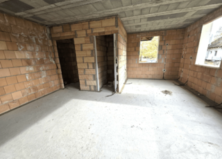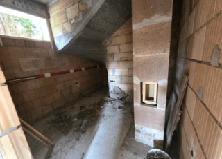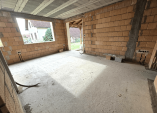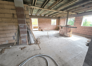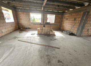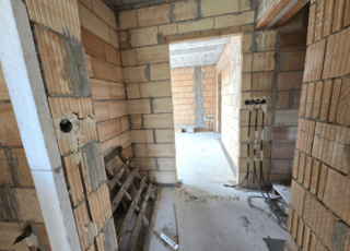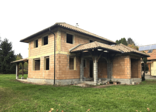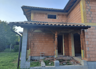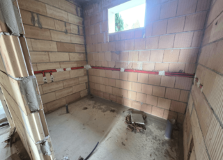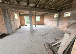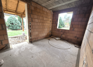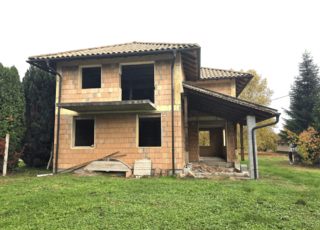 The plot is 898 m2 and flat. Construction began in accordance with local building regulations in the LK-1 residential zone. The building was constructed according to plan up to the shell stage. The design documentation and building permit are available.