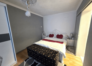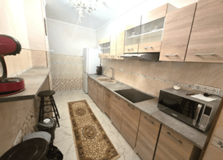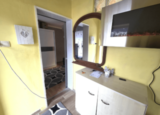 Földszint külön bejárattal 40 m2 -es apartman: hálószoba, konyha, fürdőszoba-WC, előtér.
