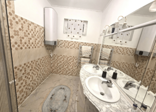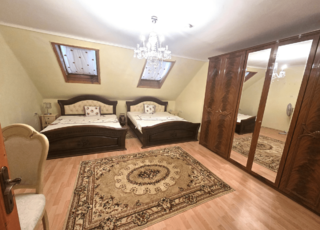 Tetőtér 50 m2: 2 szoba, előtér, 2 fürdőszoba-WC, WC, erkély 5 m2.